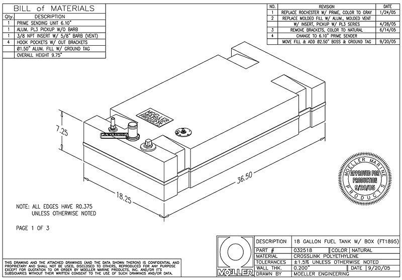 (Due to Moeller production changes, Below Deck tanks may be shipped with molded polyethylene fuel fills in lieu of aluminum fuel fills)