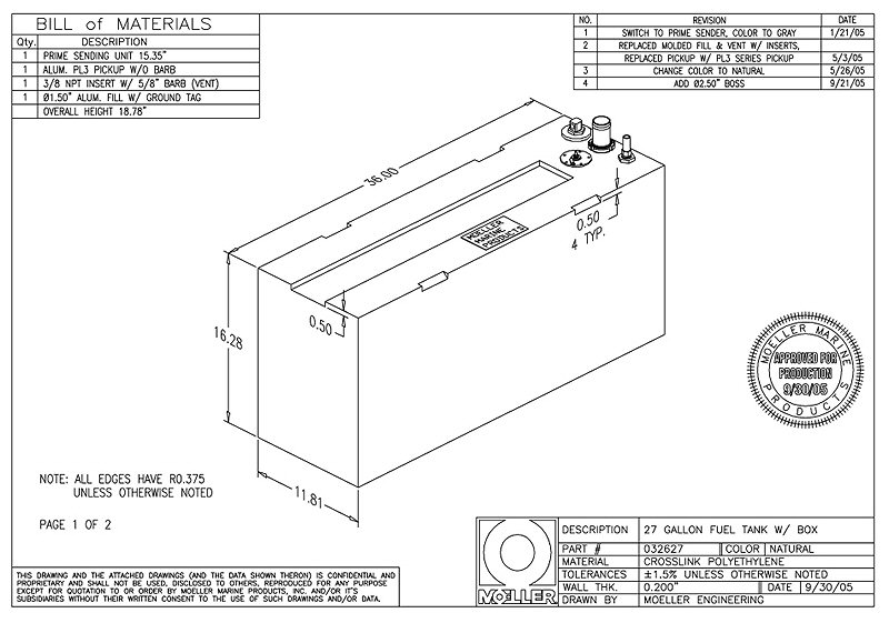 | Product Name | MOELLER 27 Gal. Below Deck Fuel Tank #032627 |