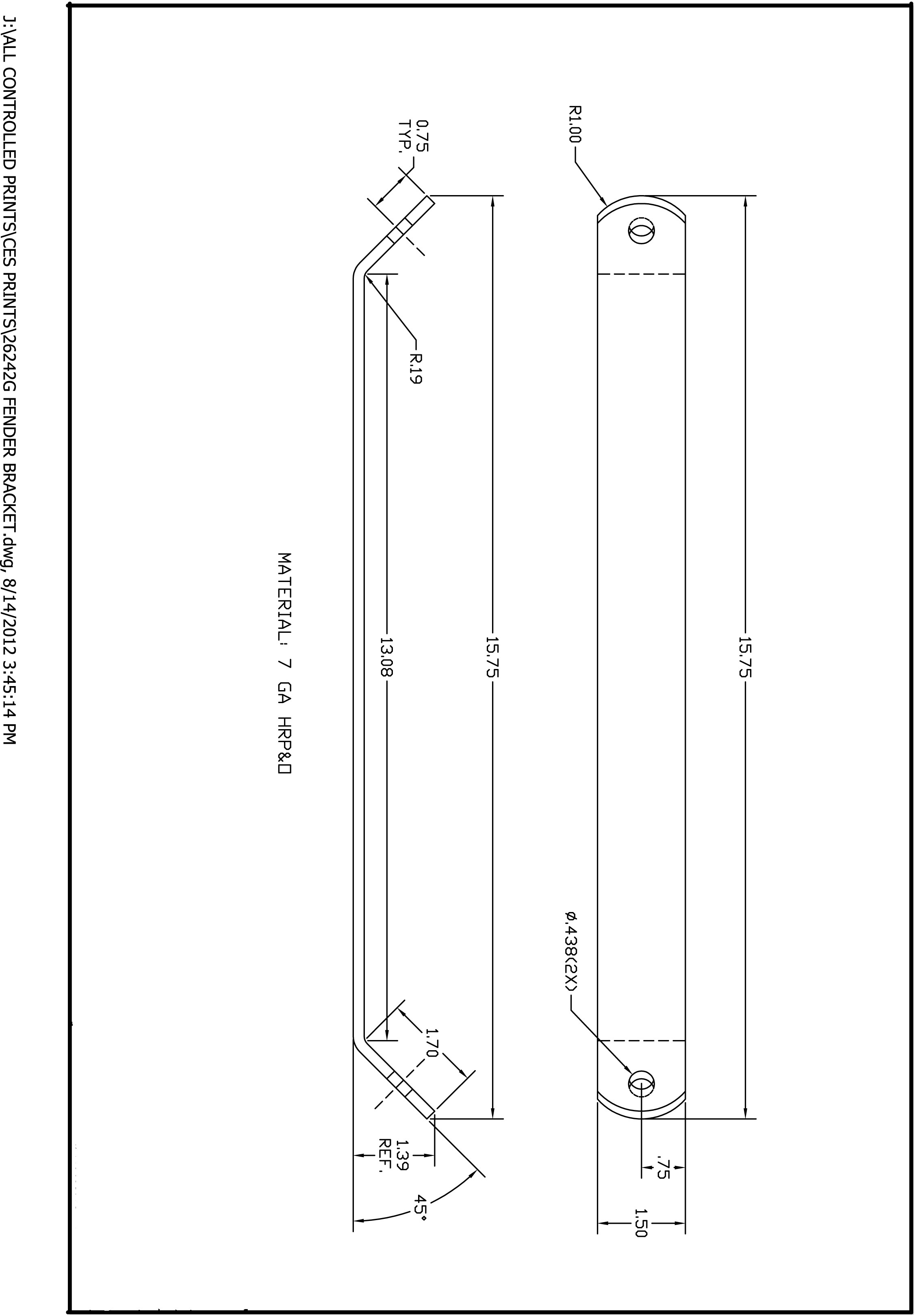 VENTURE galvanized fender brace for use with tandem or triple aluminum trailer fenders. Measures 15-1/2" in length.